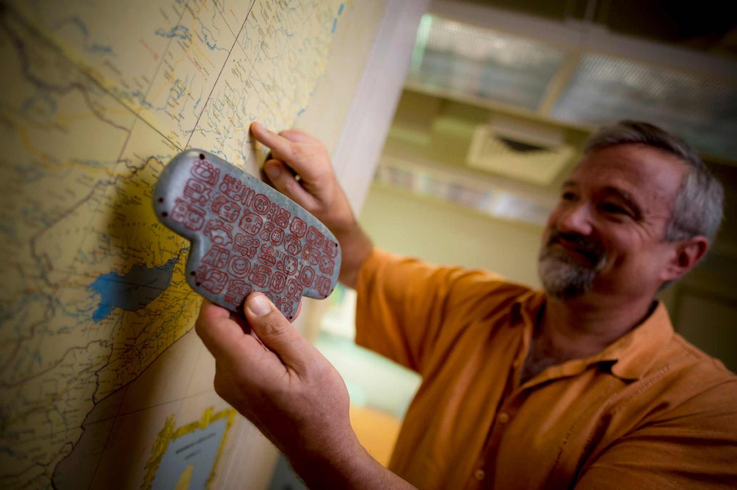 The jade has 30 hieroglyphs carved into the back about its first owner and is the only one known to be inscribed with a historical text.