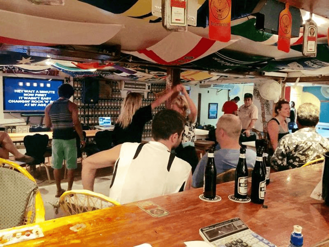 Just one look at all the pennants, flags, banners and other sporting memorabilia covering the walls and ceilings around the bar, visitors will know the owners and staff are just as crazy about sports as they are. What’s more, even watching your favorite team lose isn’t all that bad here, because stepping back outside with another beer, all your sorrows are washed away by the idyllic beach setting and the melodic reggae music you’ll probably hear playing. Watching sports in this part of paradise certainly has welcome benefits.